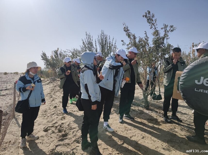 北斗同创团队被一代代造林人“向沙漠要绿色、敢教日月换新天”的战斗精神感染,在26、27日连续两天的植树活动中,志愿者们热情高涨,干劲十足。大家齐心协力,挥锄挖坑、扶苗培土,将树苗种在沙漠里。为提高植树效率,北斗同创志愿者的午餐就在沙漠解决。由于活动中耗费了不少体力,一个馕、一个烤包子、一条黄瓜,就着沙尘也显得喷香。