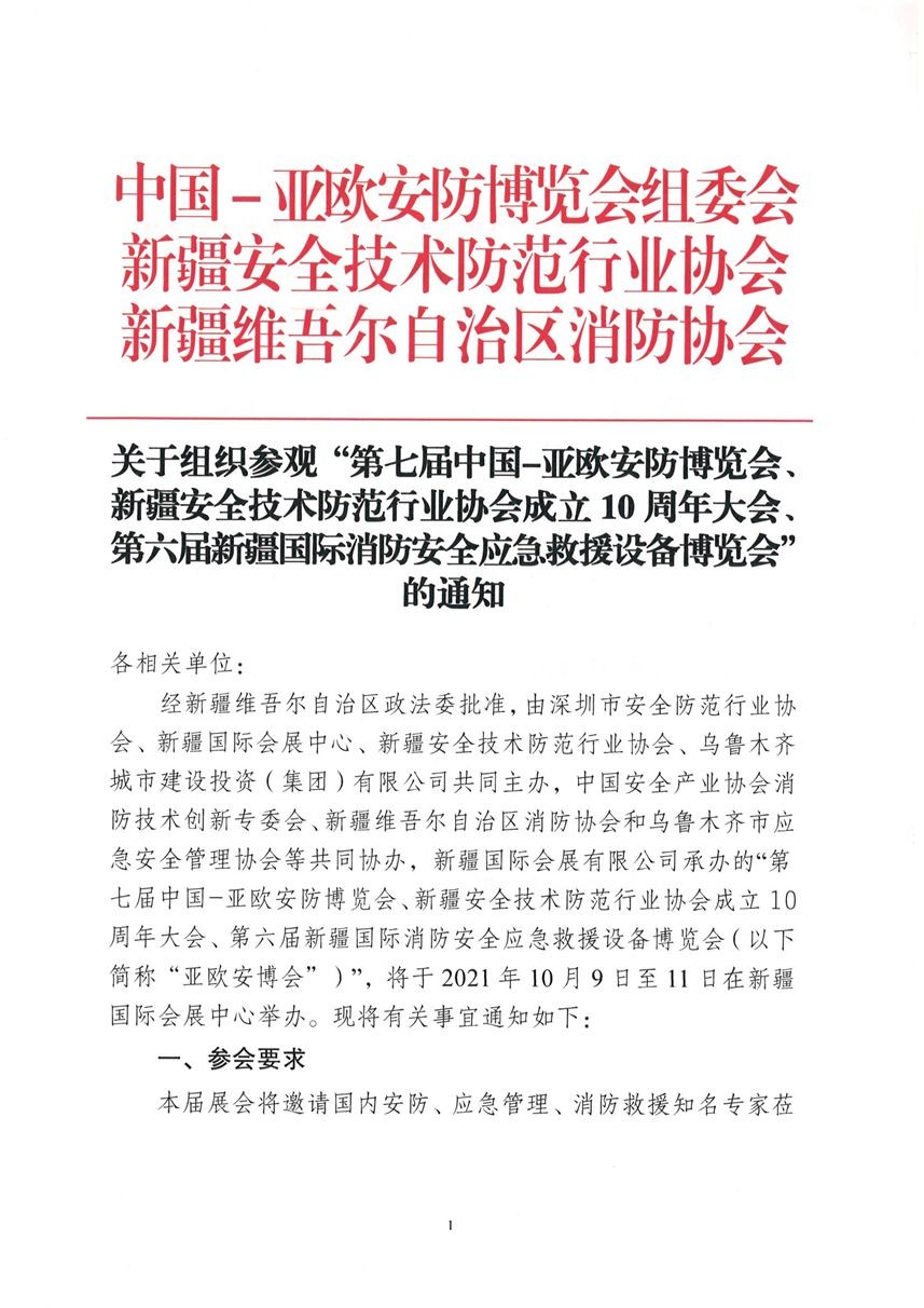 关于组织参观“第七届中国—亚欧安防博览会、第六届新疆国际消防安全应急救援设备博览会”的通知