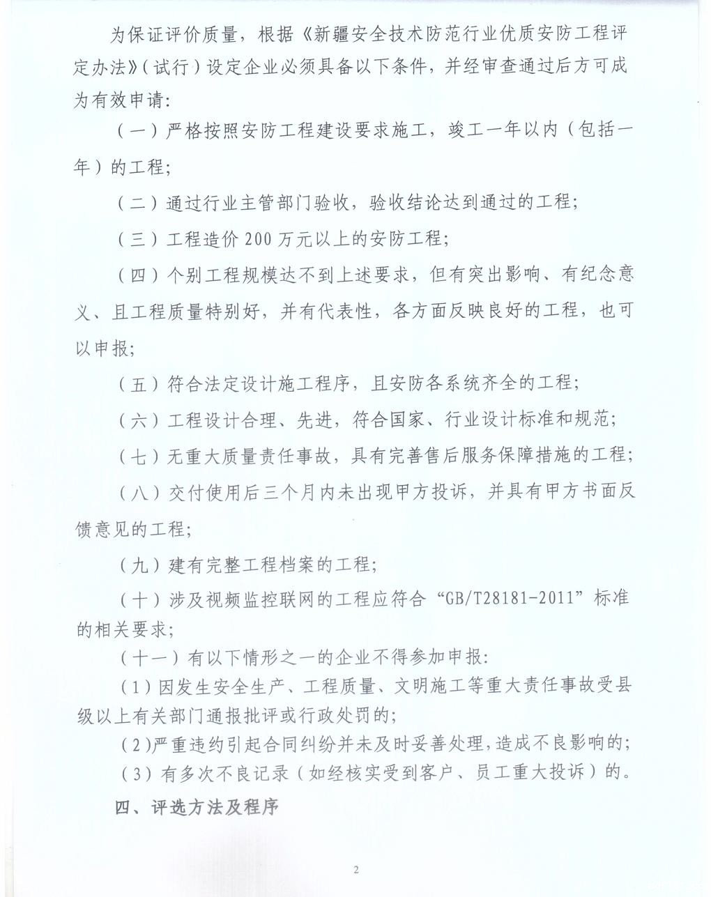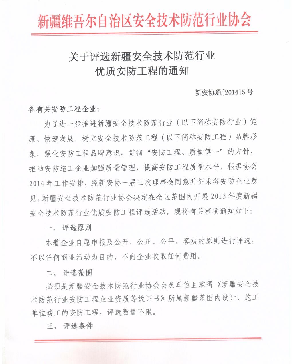 关于评选新疆安全技术防范行业优质安防工程的通知