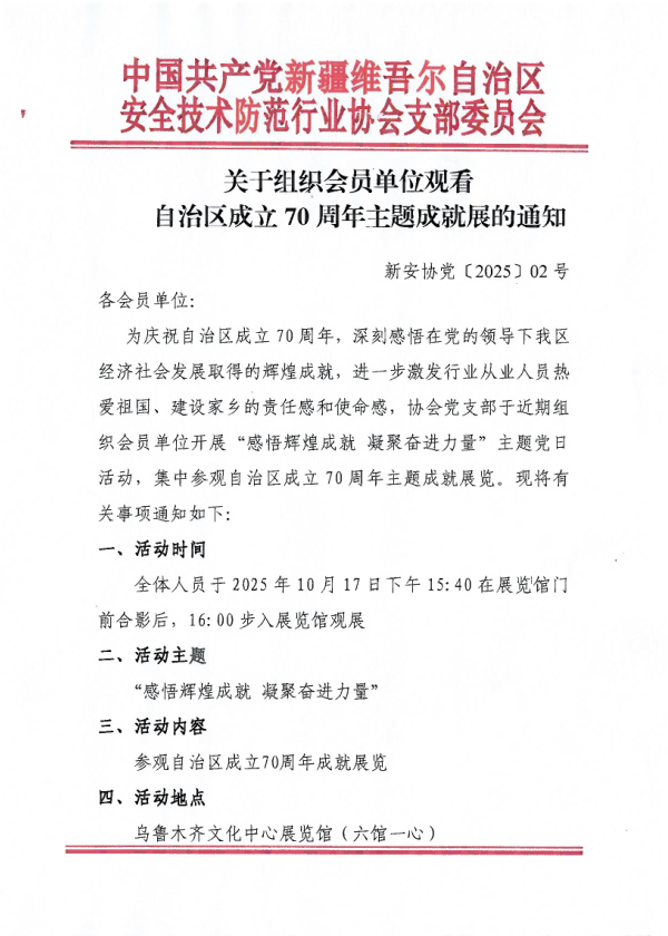 关于组织会员单位观看自治区成立70周年主题成就展的通知