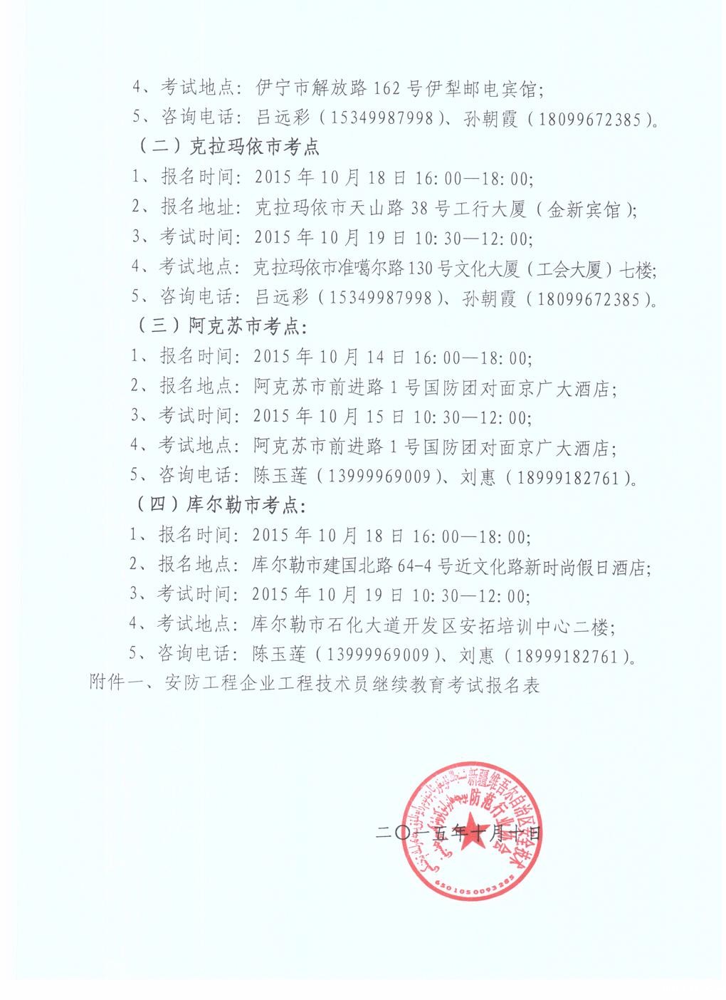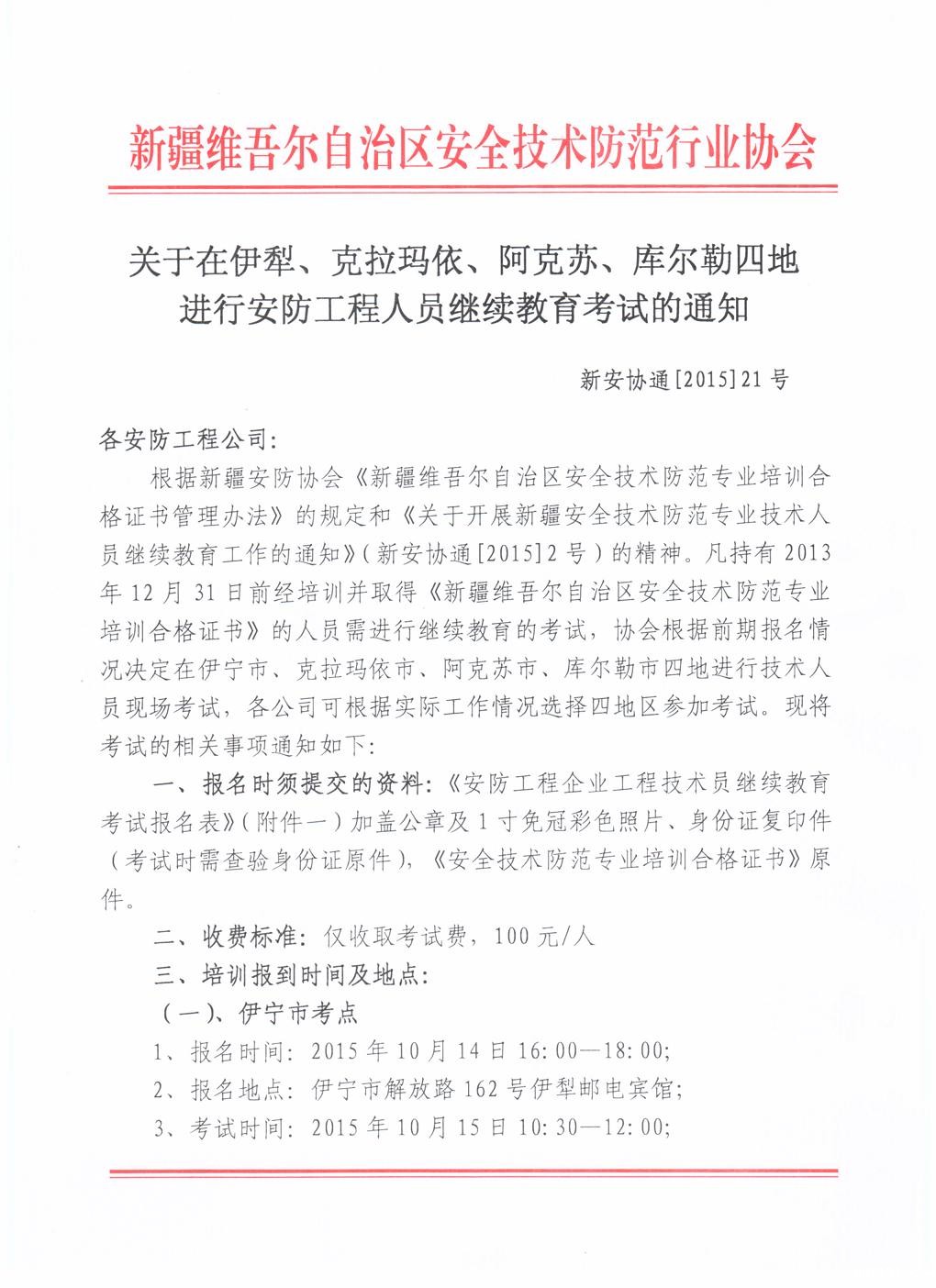 关于在伊犁、克拉玛依、阿克苏、库尔勒四地进行安防工程人员继续教育考试的通知