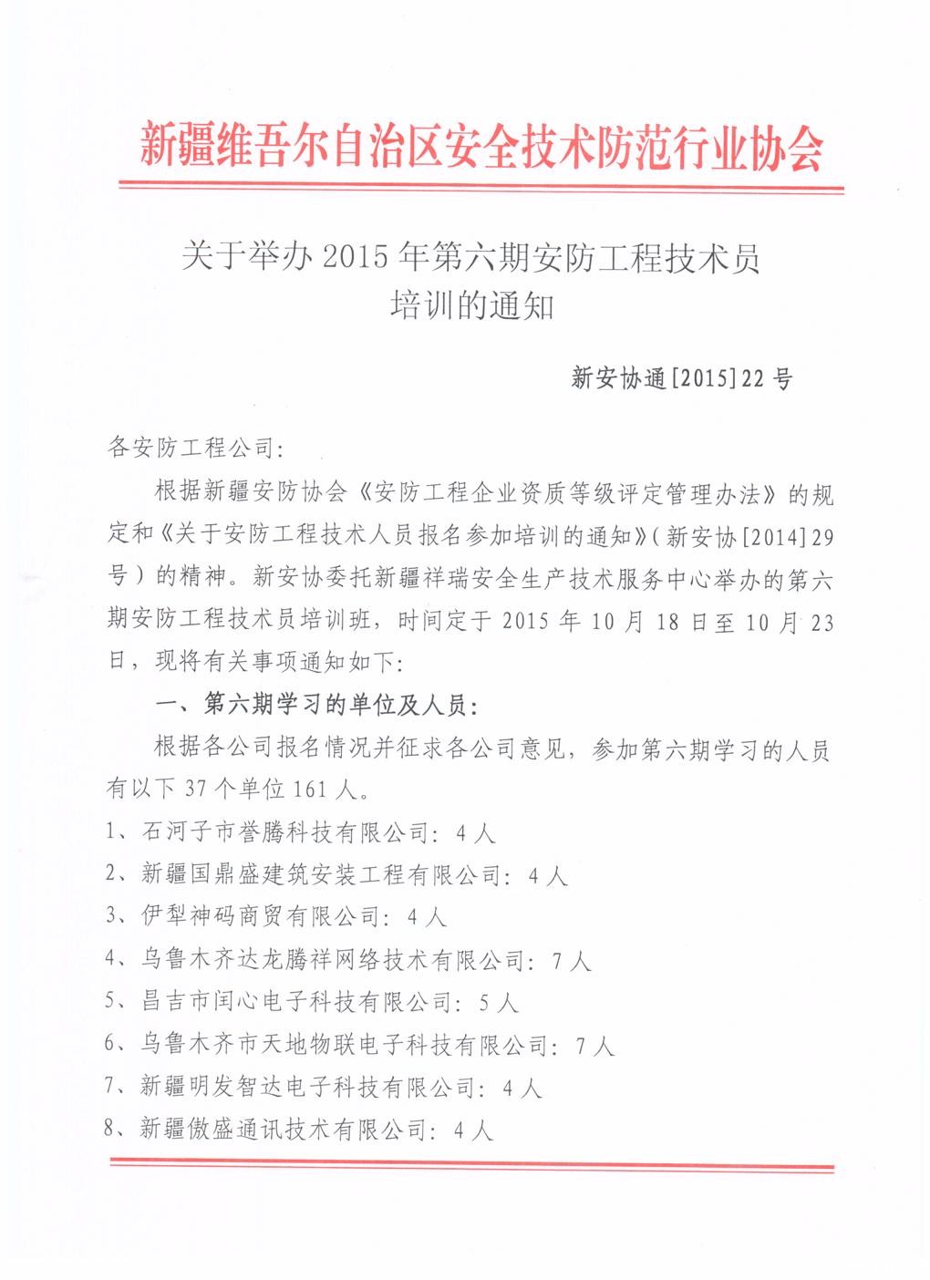 关于举办2015年第六期安防工程技术员培训的通知