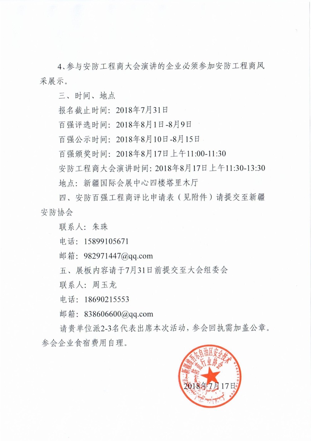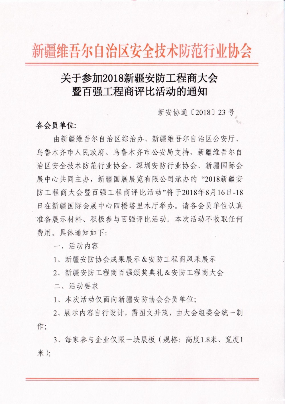 关于参加2018新疆安防工程商大会暨百强工程商评比活动的通知