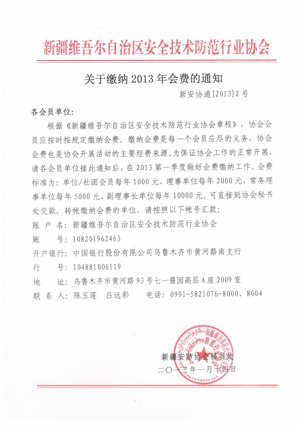 关于缴纳2013年会费的通知
