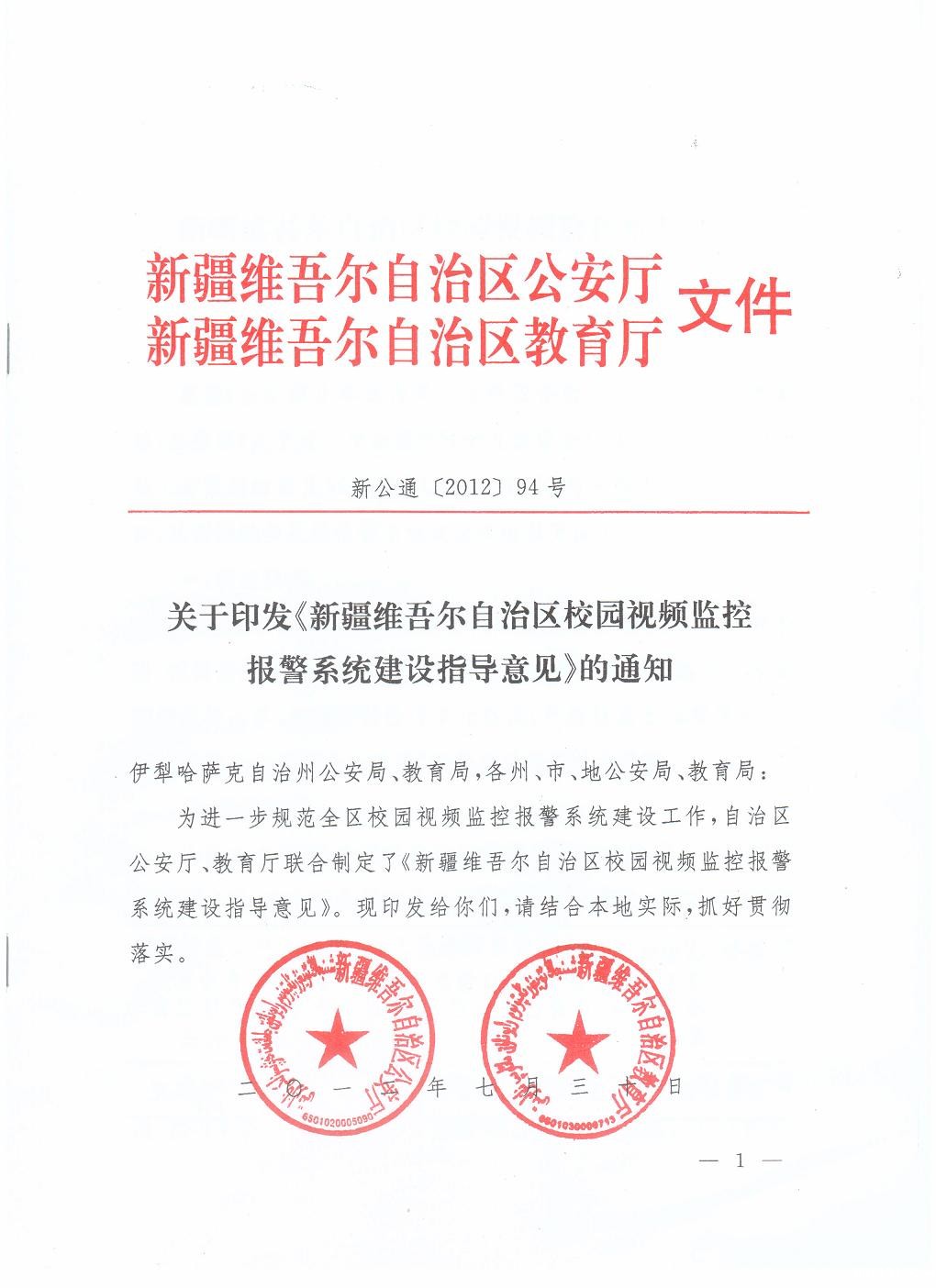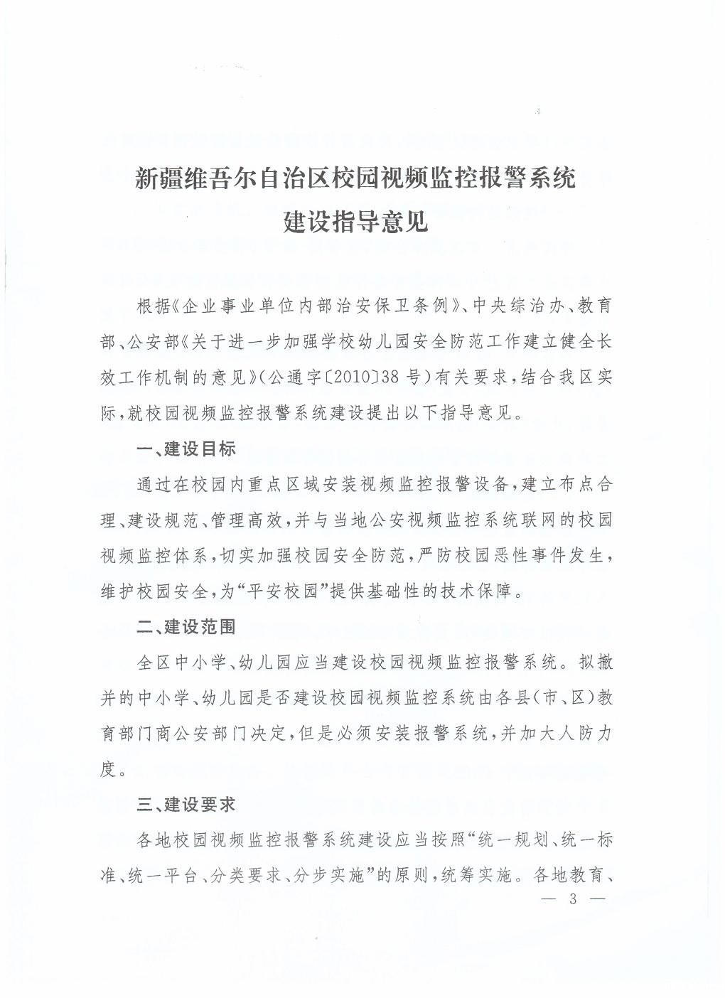 关于印发《新疆维吾尔自治区校园视频监控报警系统建设指导意见》的通知