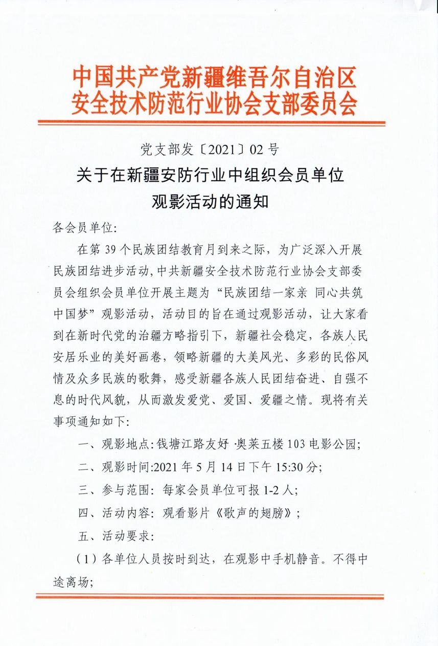 关于在新疆安防行业中组织会员单位观影活动的通知