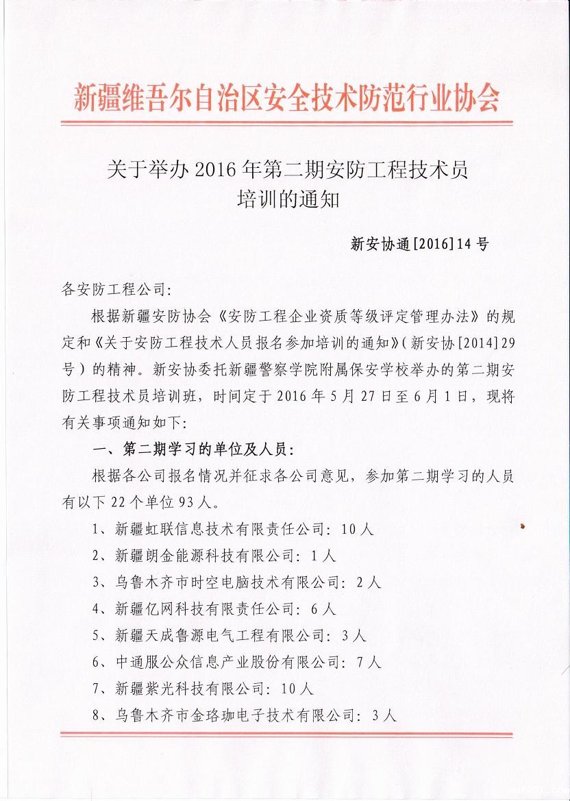 关于举办2016年第二期安防工程技术员培训的通知