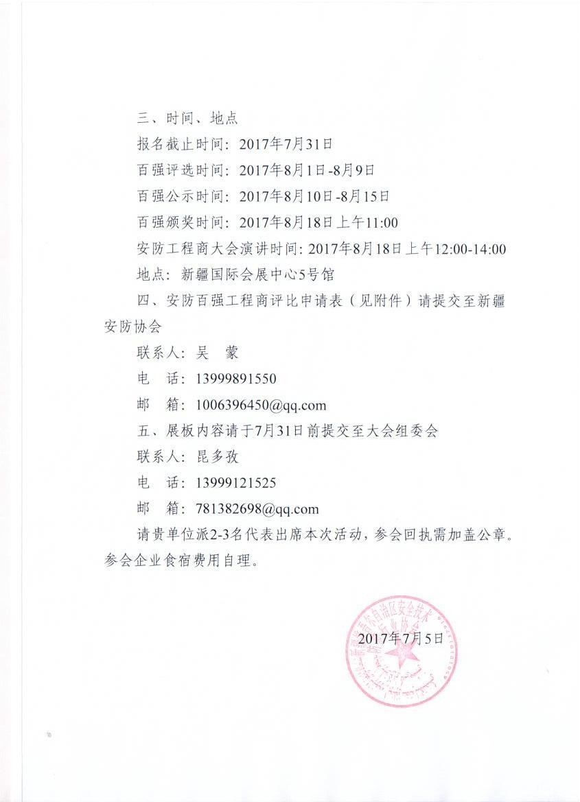 关于参加2017新疆安防工程商大会暨百强工程商评比活动的通知