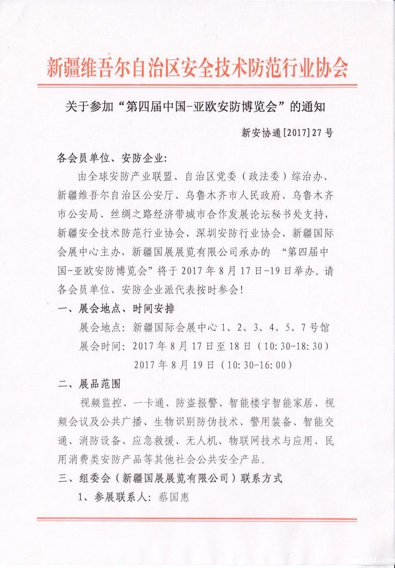 关于参加“第四届中国-亚欧安防博览会”的通知