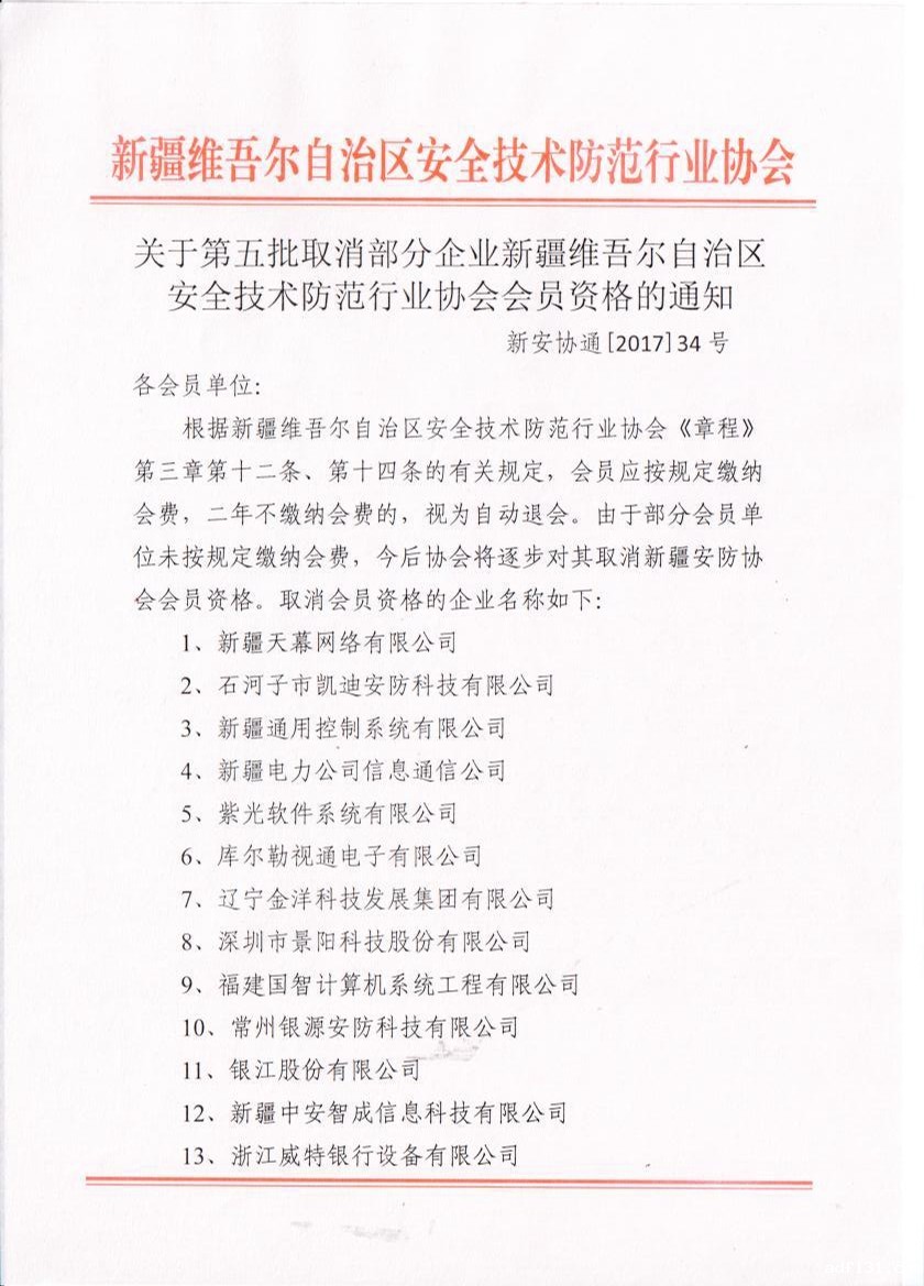 关于召开新疆安全技术防范行业协会 第三...