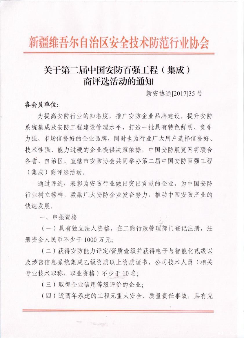 关于第二届中国安防百强工程(集成)商评选活动的通知