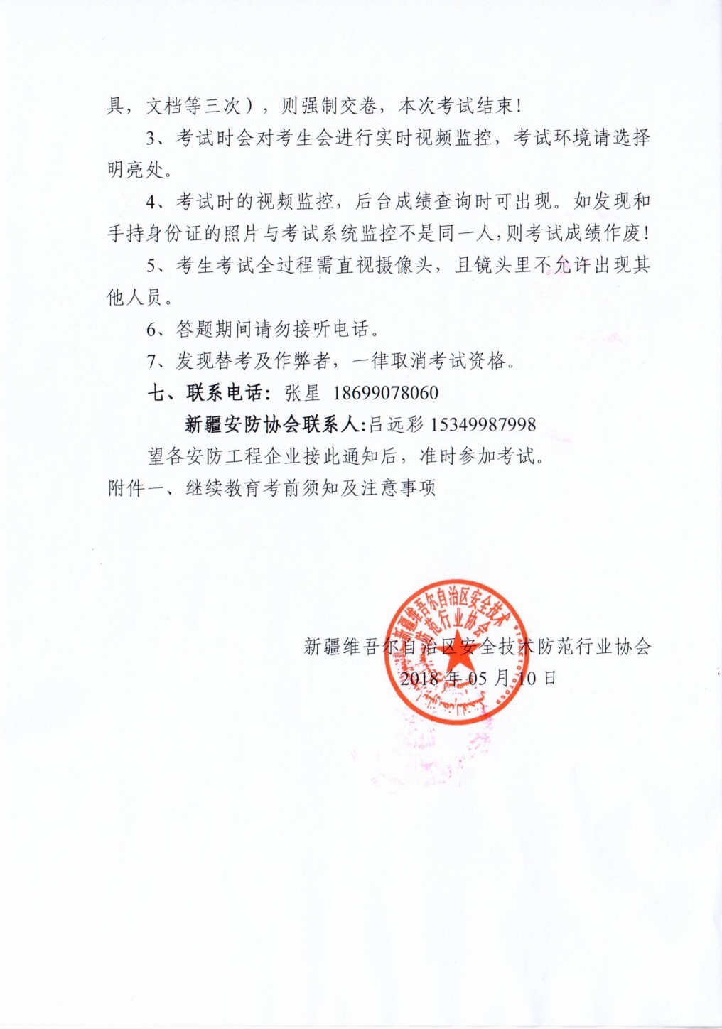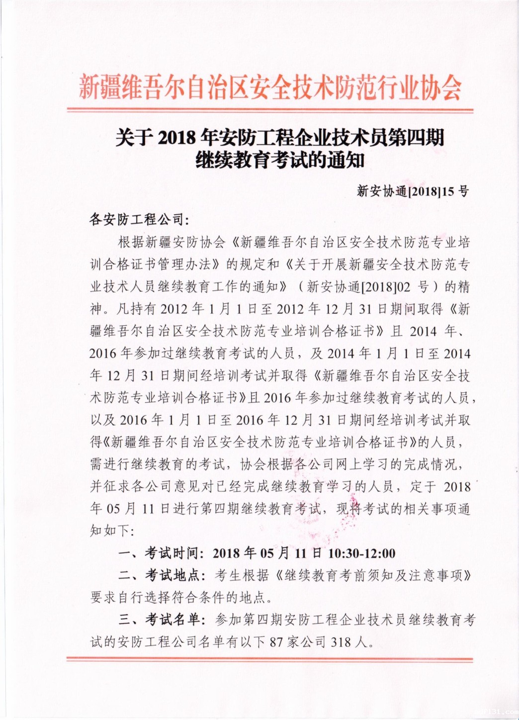 关于2018年安防工程企业技术员第四期继续教育考试的通知
