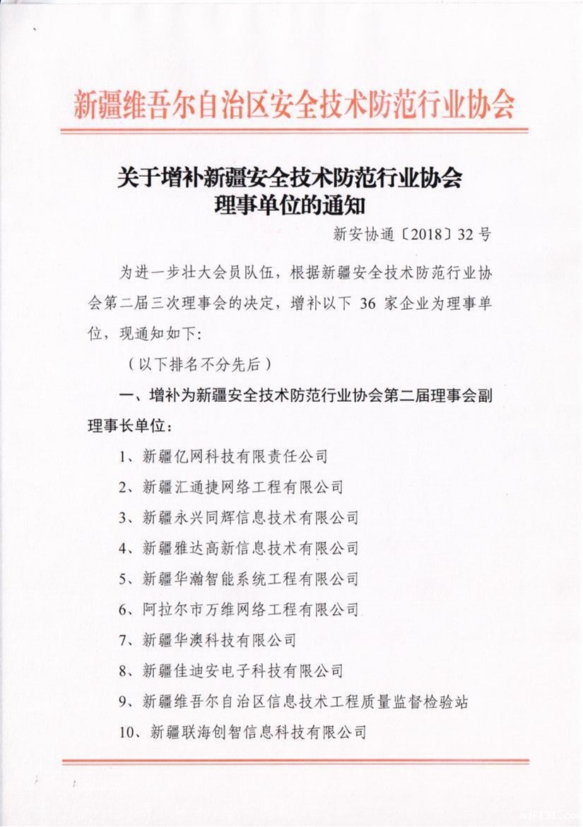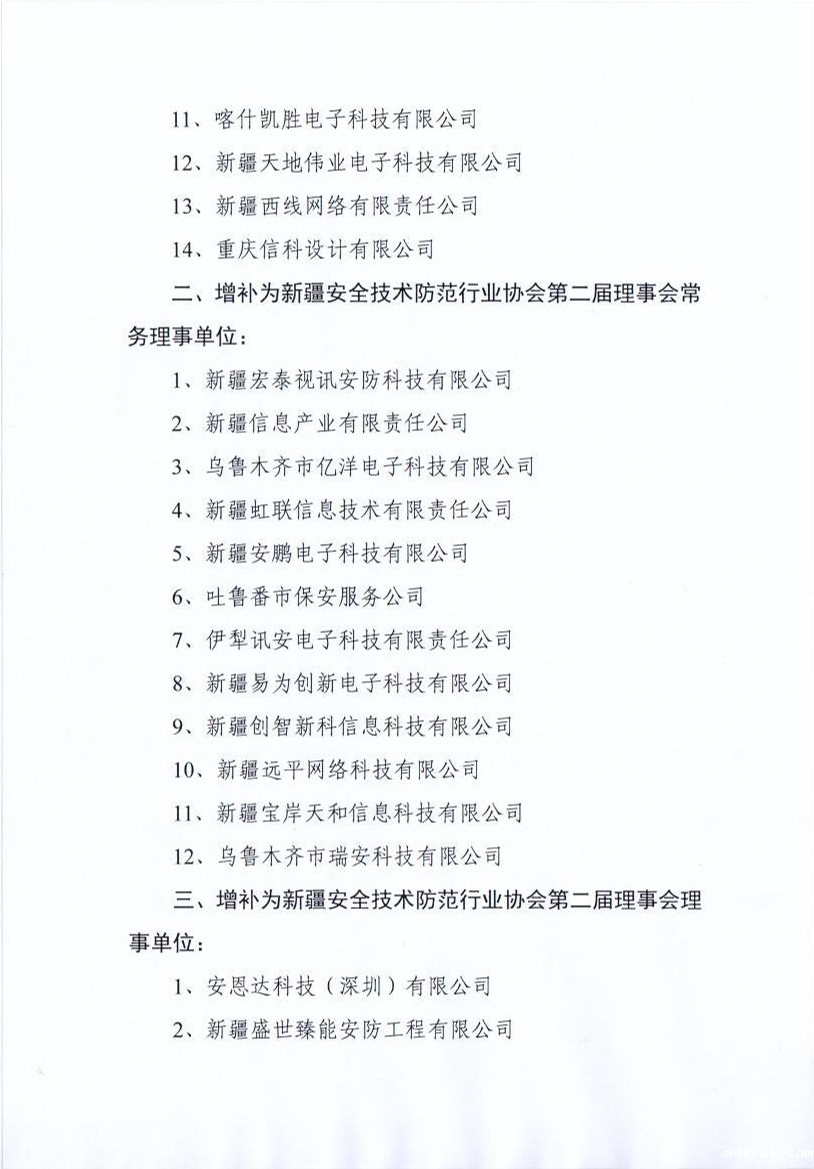 关于增补新疆安全技术防范行业协会理事单位的通知