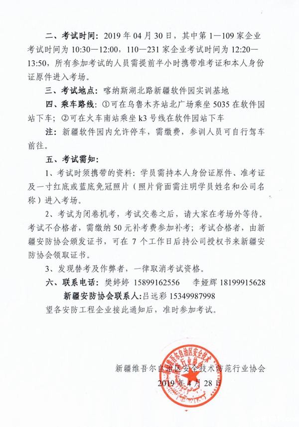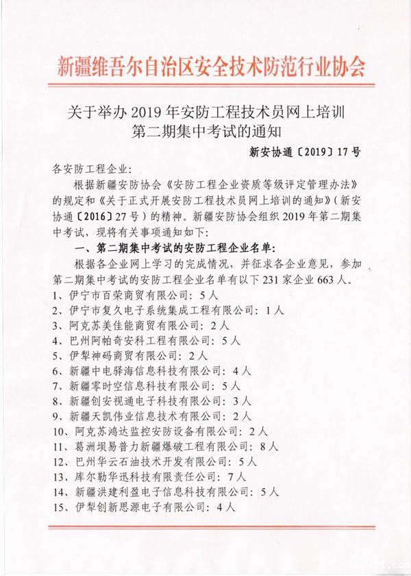 关于举办2019年安防工程技术员网上培训第二期集中考试的通知