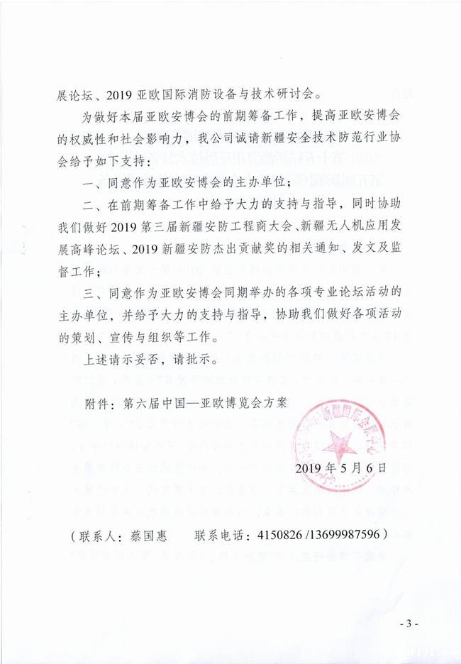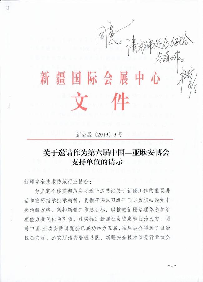 《关于邀请作为第六届中国—亚欧安博会支持单位的请示》的批复