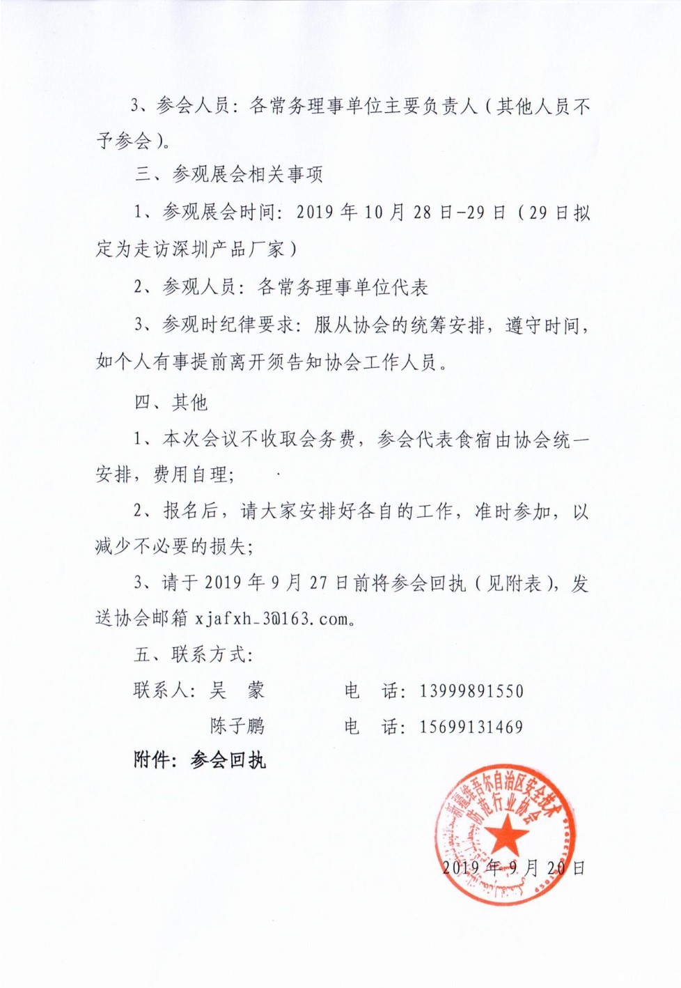 关于组织参观2019中国国际社会公共安全博览会暨召开新疆安防协会二届理事会第二次常务理事会议的通知