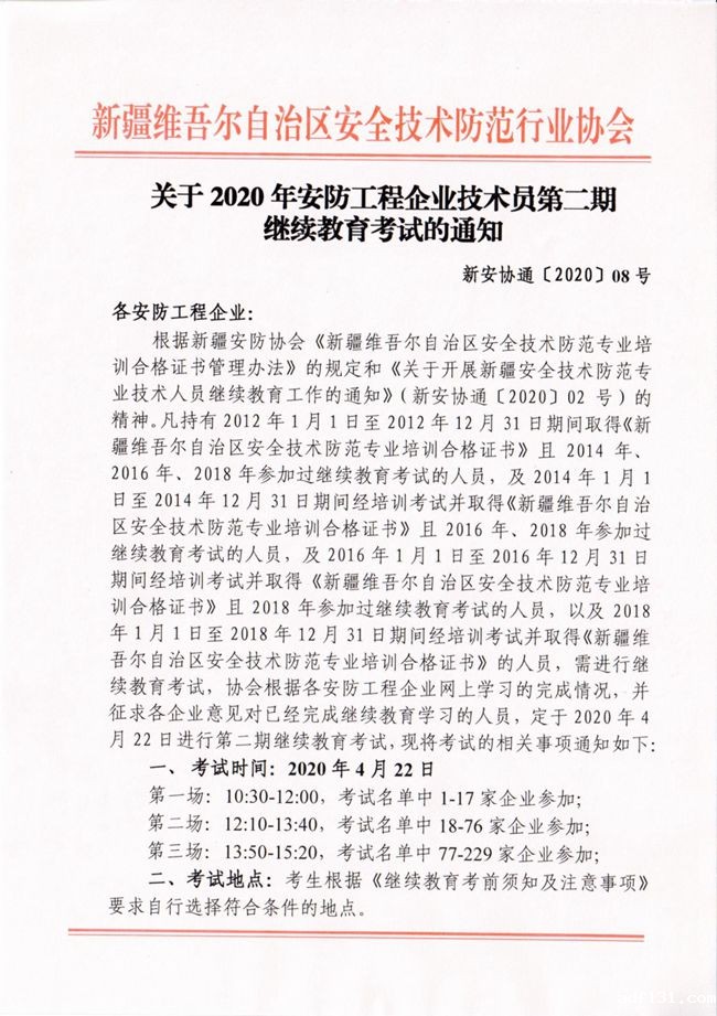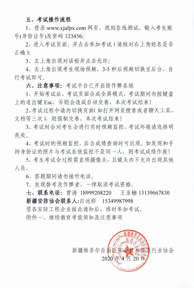 关于2020年安防工程企业技术员第二期继续教育考试的通知