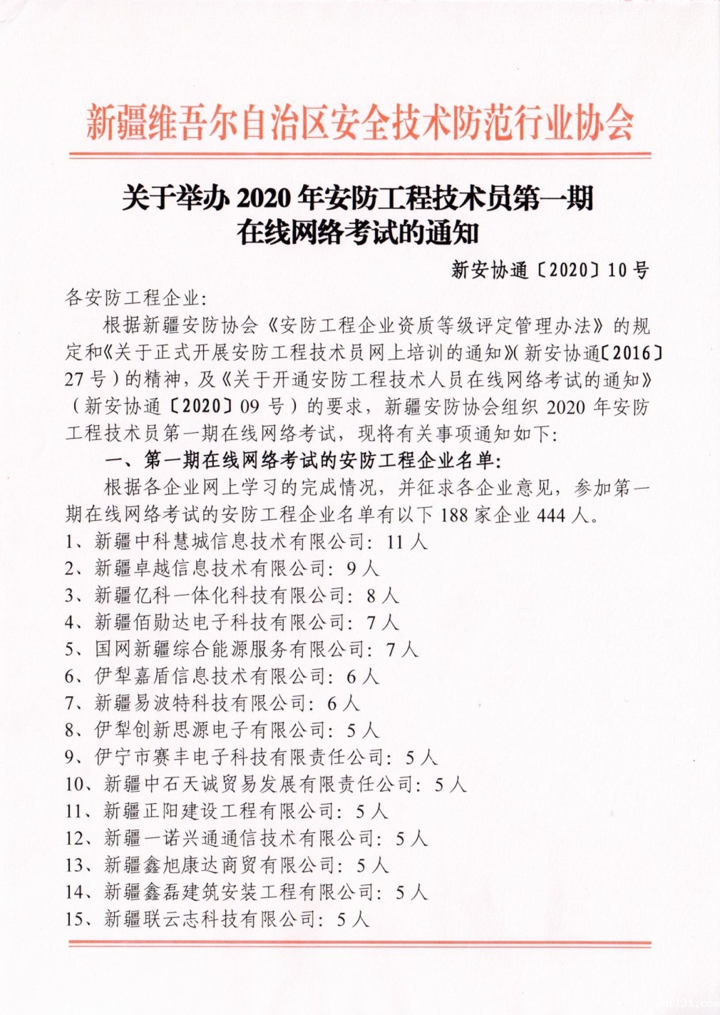 关于举办2020年安防工程技术员第一期在线网络考试的通知