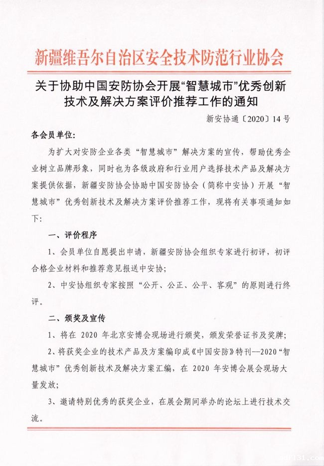 关于协助中国安防协会开展“智慧城市”优秀创新技术及解决方案评价推荐工作的通知