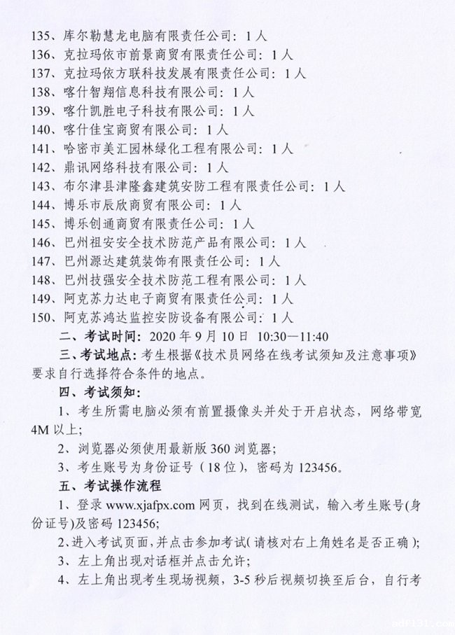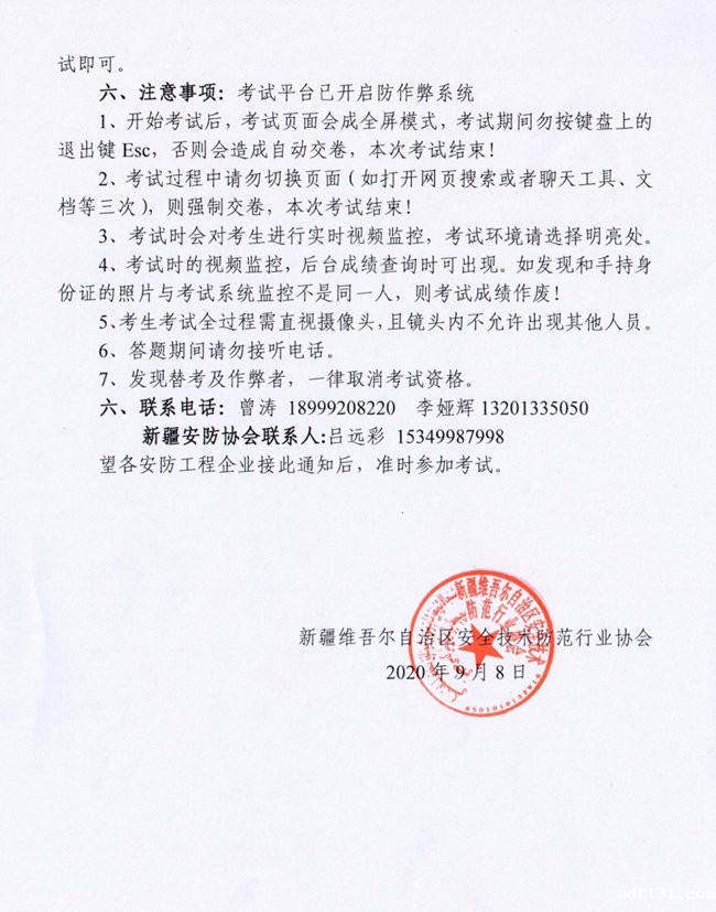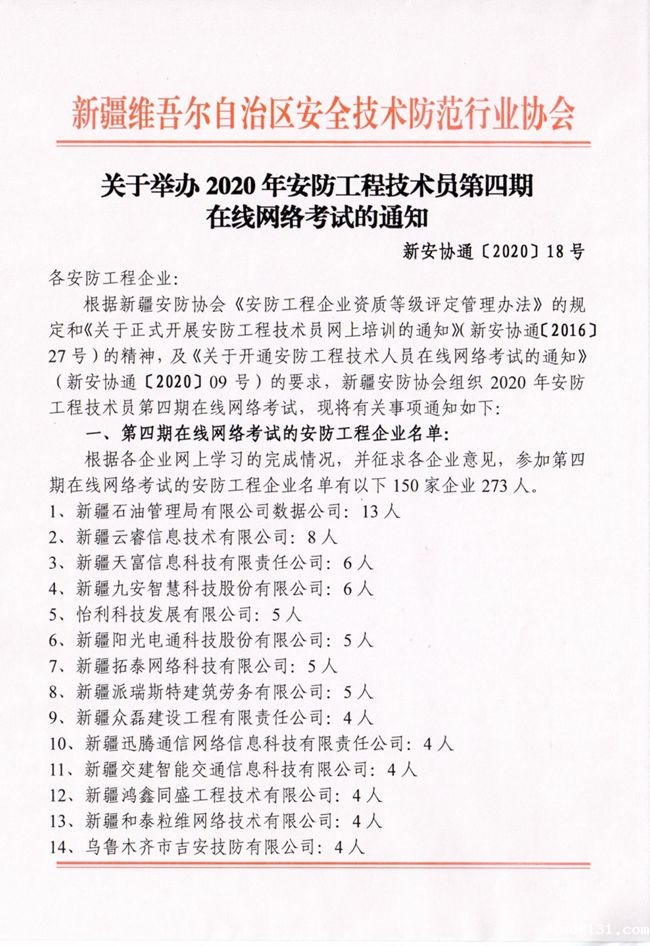 关于举办2020年安防工程技术员第四期在线网络考试的通知