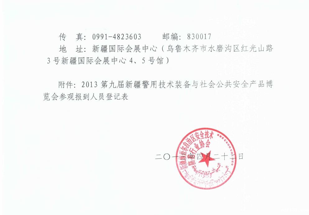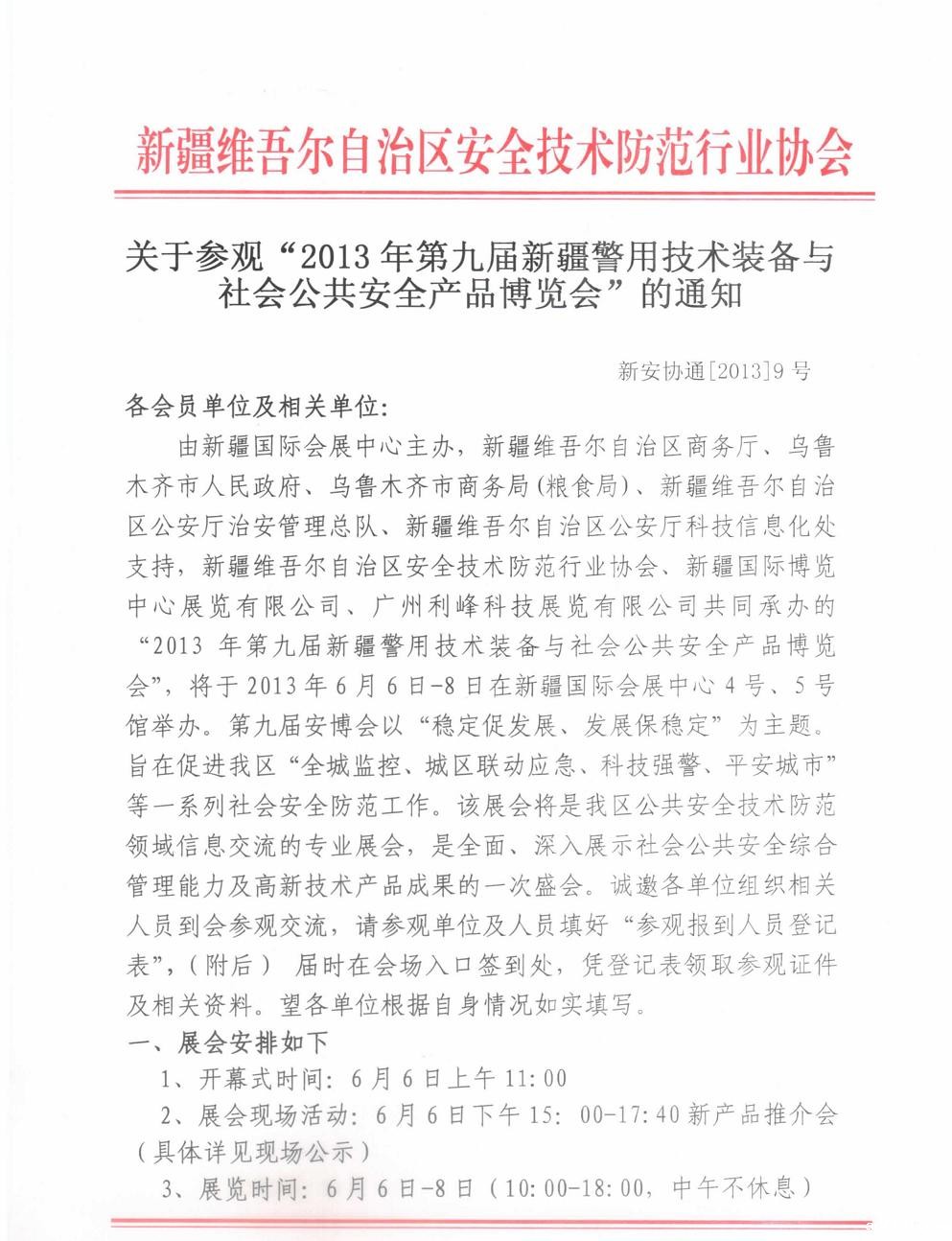 关于参观“2013年第九届新疆警用技术装备与社会公共安全产品博览会”的通知