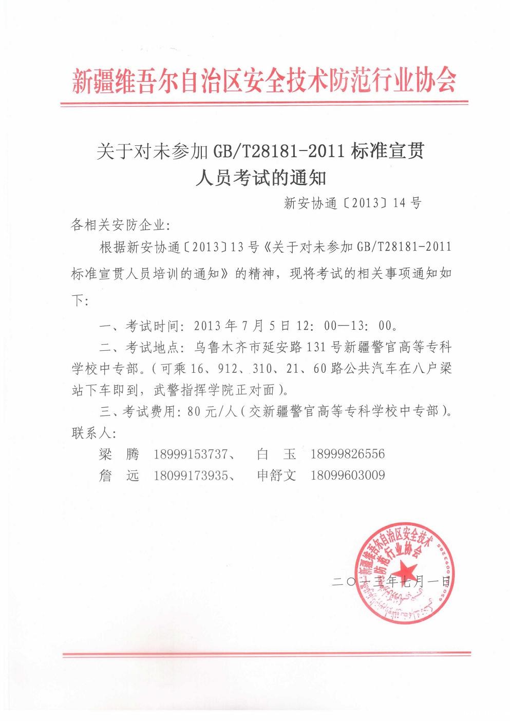 关于对未参加GB/T28181-2011标准宣贯人员考试的通知