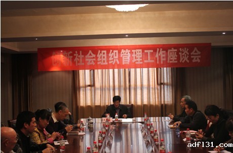 2013年11月28日自治区民政厅社团处在乌市开发区三叶大厦召开了创新社会组织管理工作座谈会。